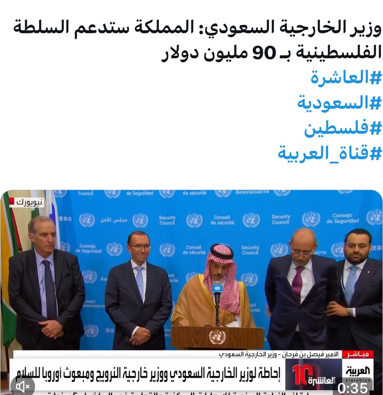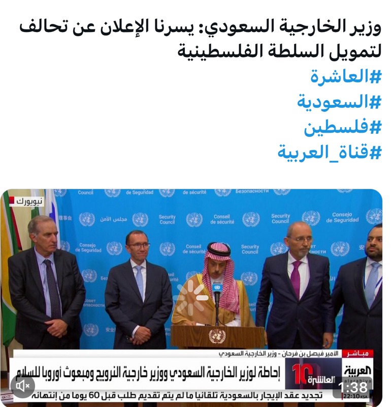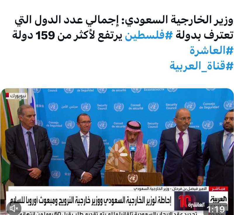 وزير الخارجية السعودي يترأس الاجتماع الوزاري رفيع المستوى لتنفيذ حل الدولتين، على هامش أعمال الجمعية العامة للأمم المتحدة - من حساب وزارة الخارجية السعودية